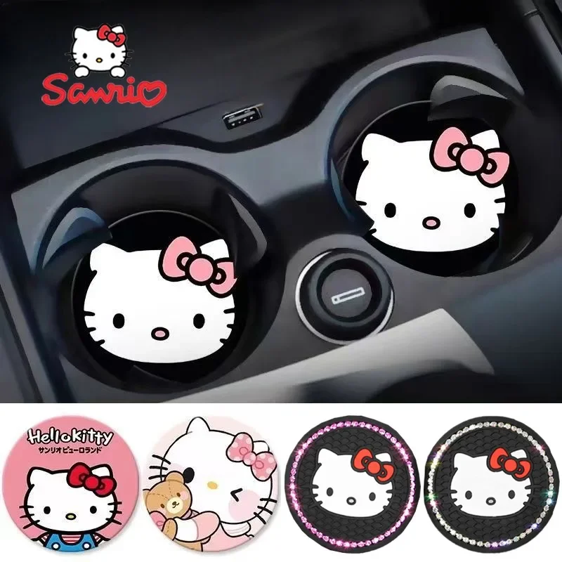 2pcs Sanrio Hello Kitty Car cup Coasters Cartoon car inner Decoration Anti Slip Mat silicone Car Cup pad Gifts for girl friend