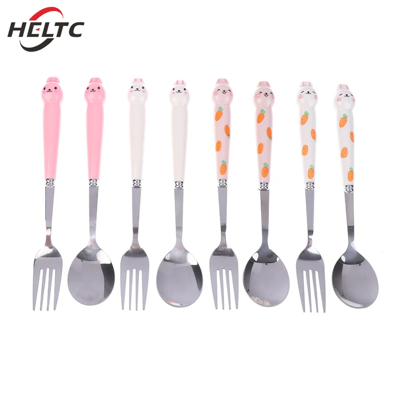 Tableware Set Cartoon Rabbit Stainless Steel Spoon Fork Chopstick Student Portable Dinnerware Travel Cutlery Sets With Box