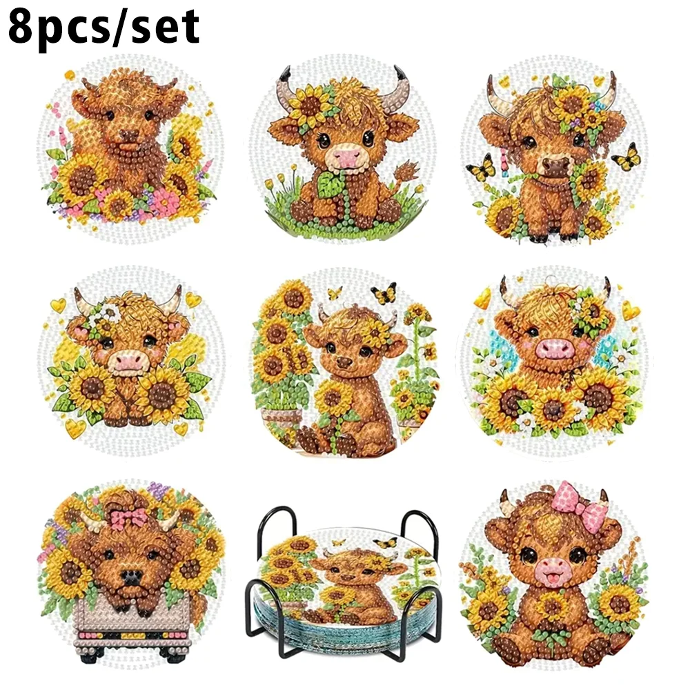 8 pieces/set animal pattern diamond painted coaster set Sparkling rhinestone heat-resistant beverage mat with holder DIY coaster  Read more