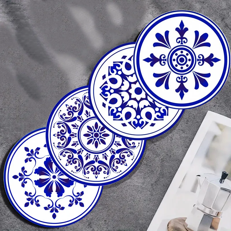 4 pieces of floral printed coasters, suitable for daily family party decoration, office, non-slip wooden coasters, holiday gifts