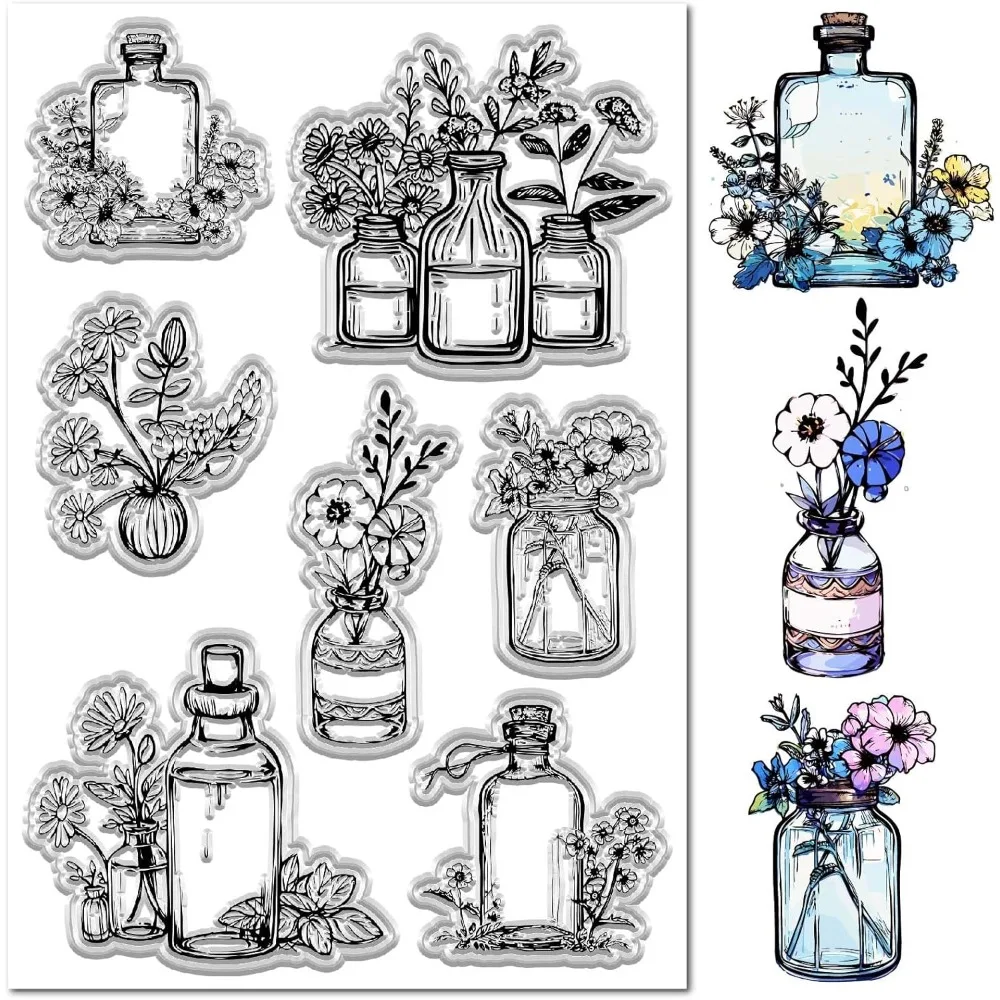 Plants Clear Stamps Plant Stampers Silicone Rubber Reusable Transparent Spring Flower Leaves Bottle Decorative Paper Stamp Seals