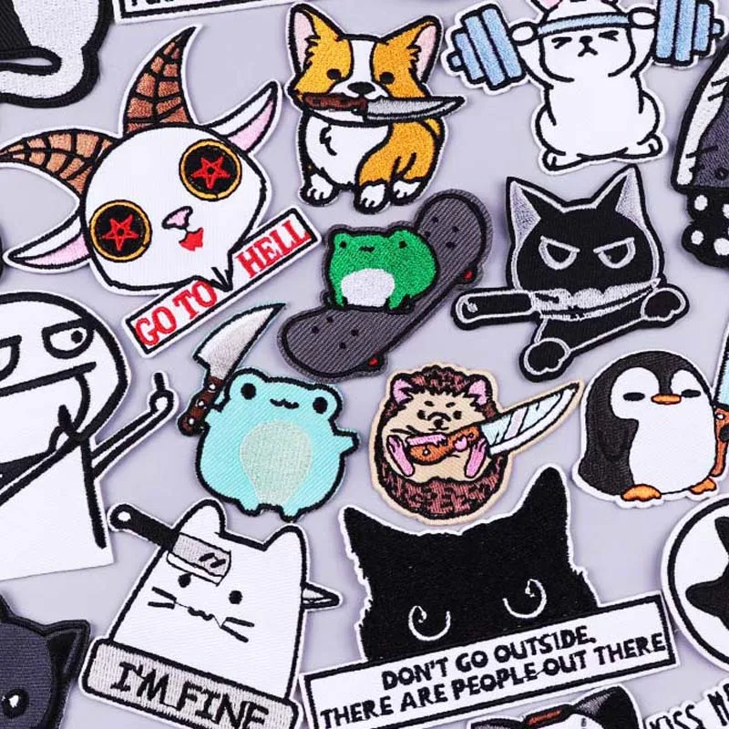 Animal and Knife Embroidery Patch Iron On Patches For Clothing Thermoadhesive Patches On Clothes Black Cat Sewing Patch Stickers  Read more