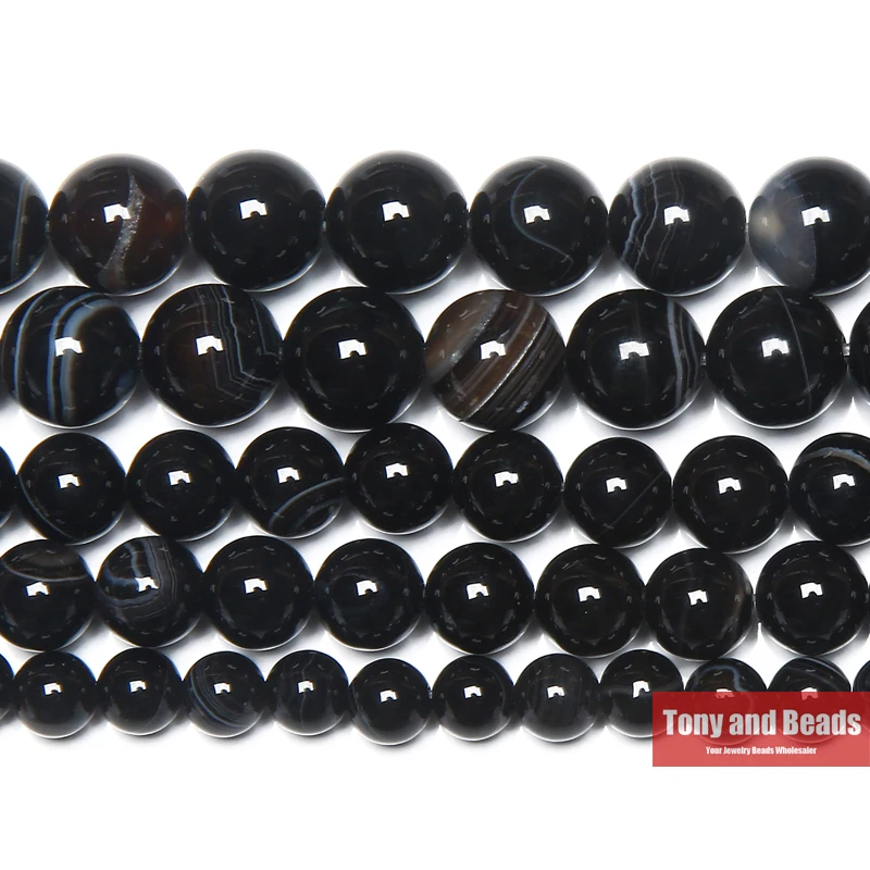 Natural Stone Black Stripe Onyx Agate Round Loose Beads 4 6 8 10 12MM Pick Size For Jewelry Making