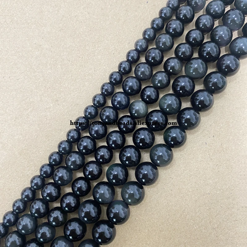 Natural Stone Black(Rainbow) Obsidian Round Loose Beads 15" Strand 4 6 8 10 12 14MM Pick Size For Jewelry Making SAB15  Read more