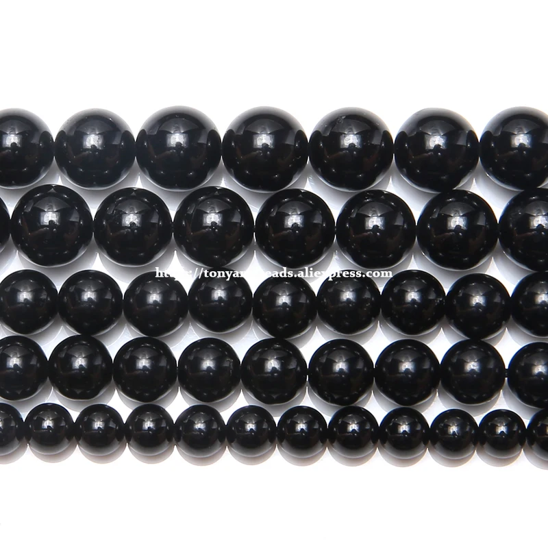 A quality Natural Genuine Black Tourmaline Stone Round Loose Beads 15" Strand 6 8 10 12MM Pick Size For Jewelry