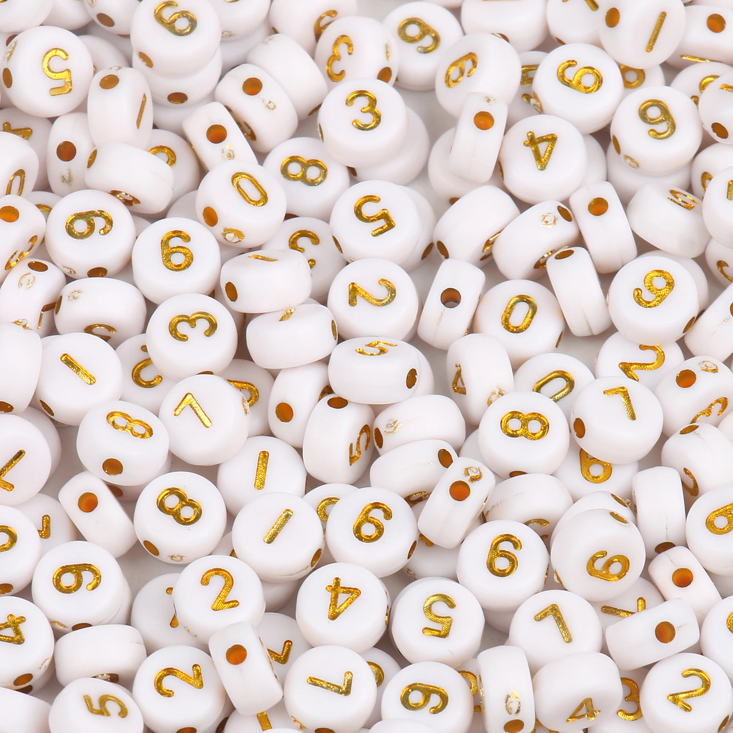 200pcs Mixed Digital Letter Acrylic Beads White Gold Color Round Flat Number Bead for Jewelry Making Diy Charm Bracelet Necklace