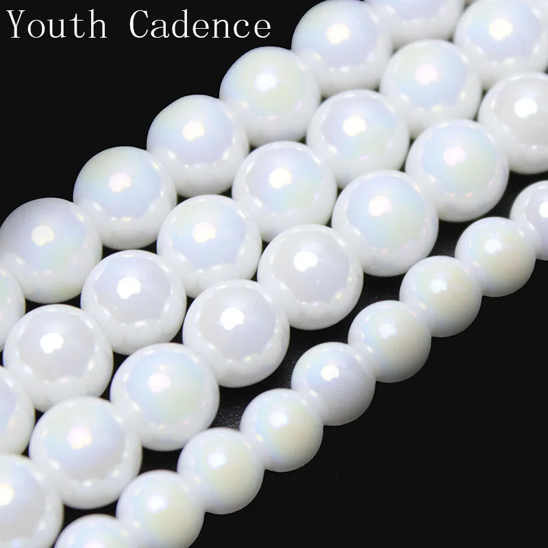 Natural AB Color Porcelain White Crystal Beads Glass Round Loose Beads For Jewelry Making DIY Necklace Bracelet 15inches 6/8/10m