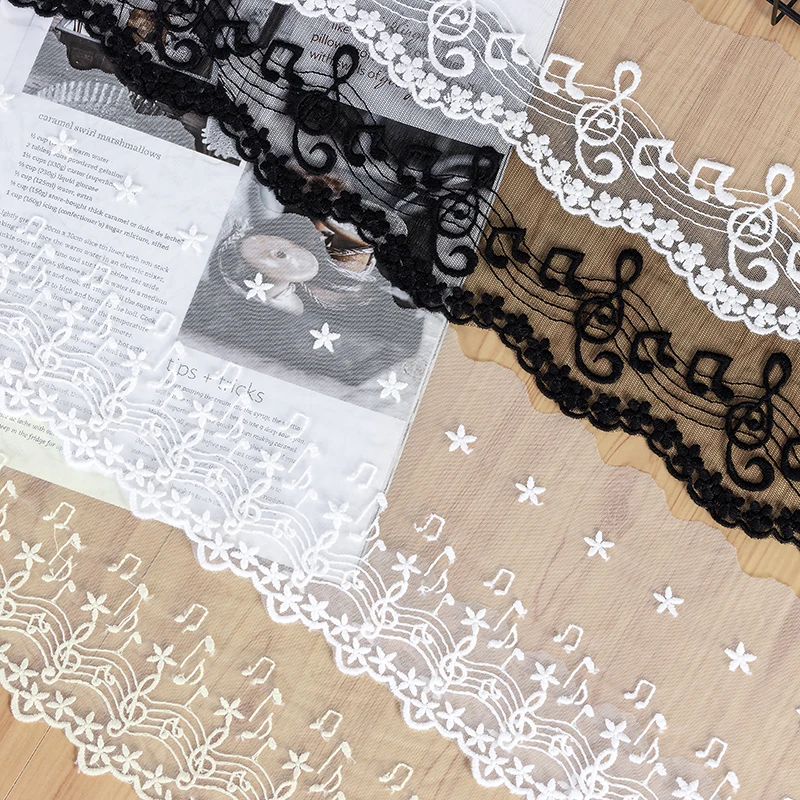 1yard Music Note Mesh Embroidered Lace Trim Ivory White Black for DIY Crafts/Wedding Dress Sewing Accessories Decoration