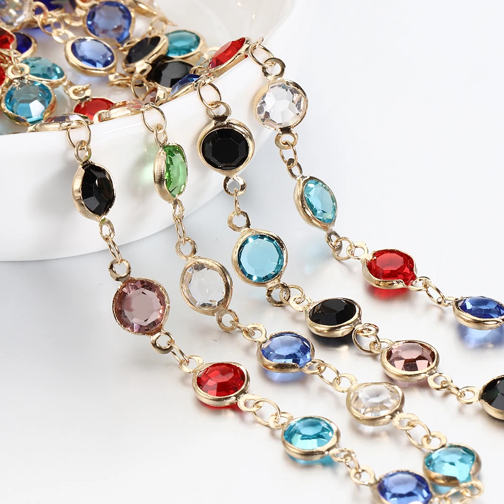 1 Meter/lot Mixed Color Crystal Glass Beads Chain Copper Chain for DIY Jewelry Making Necklace Bracelet Accessories Materials  Read more
