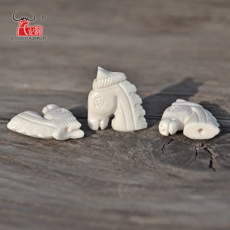GZ-026 3PCS Handmade Carved Yak Bone horse Yellow Beads for Jewelry Making DIY Jewelry Accessory 20mm X 20mm Hole:1.5mm  Read more