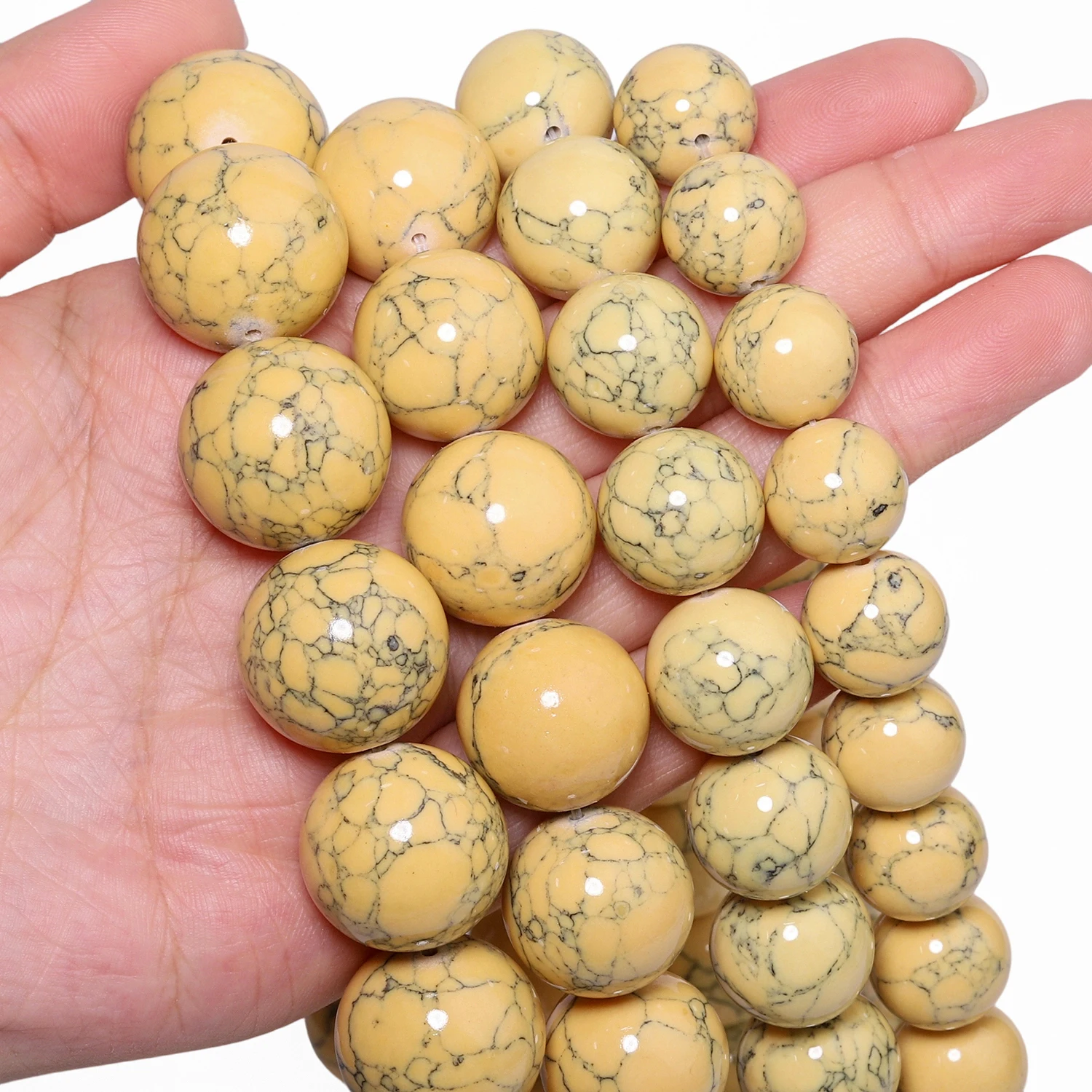 14/16/18/20mm Large Size Yellow Synthesis Howlite Beads Round Spacer Beads for Jewelry Making DIY Charms Bracelets Accessories