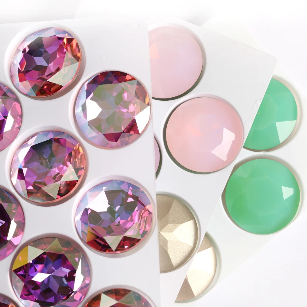 27mm 1201 Round Fancy Stones Glitter Red Yellow Diy Craft Supplies Pointback Glass Rhinestones For Sewing Crystal Strass