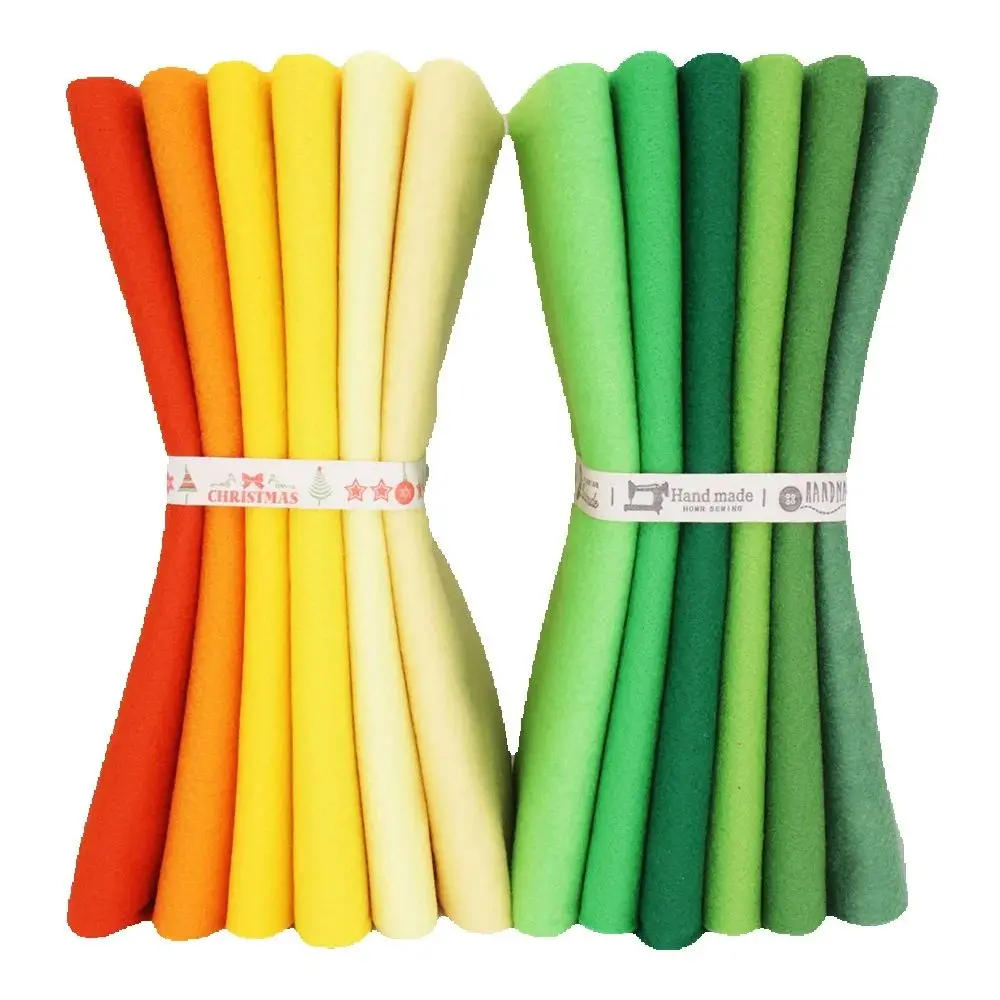 1.2mmGreen Yellow Soft Felt For DIY Handwork Sewing Cloth Crafts Dolls Needlework Material, Polyester Fabric 12 Pcs/Lot 25cmx28cm