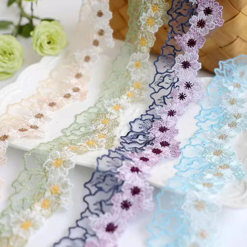 1 Yard Embroidered Green Purple White Flower Lace Fabric Sewing DIY Trim Ruffle Applique Ribbon Collar Decor