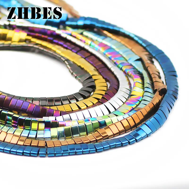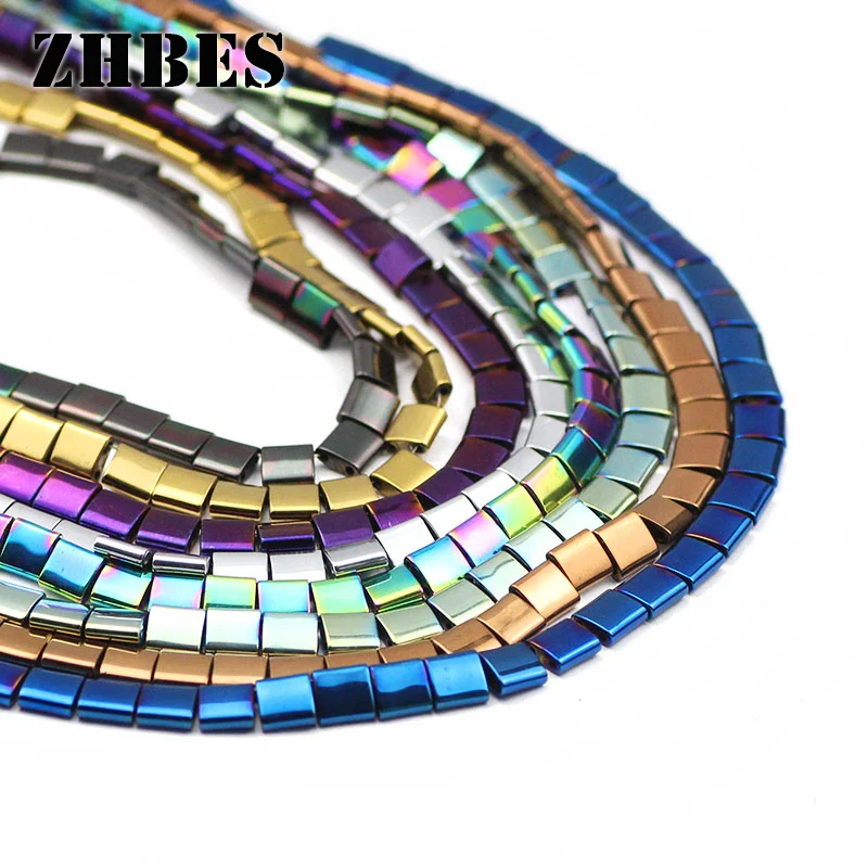 Natural Stone Blue, Green, Gold color Flat Rectangle Hematite Square Spacer Loose Beads For DIY Jewelry Making bracelet Findings