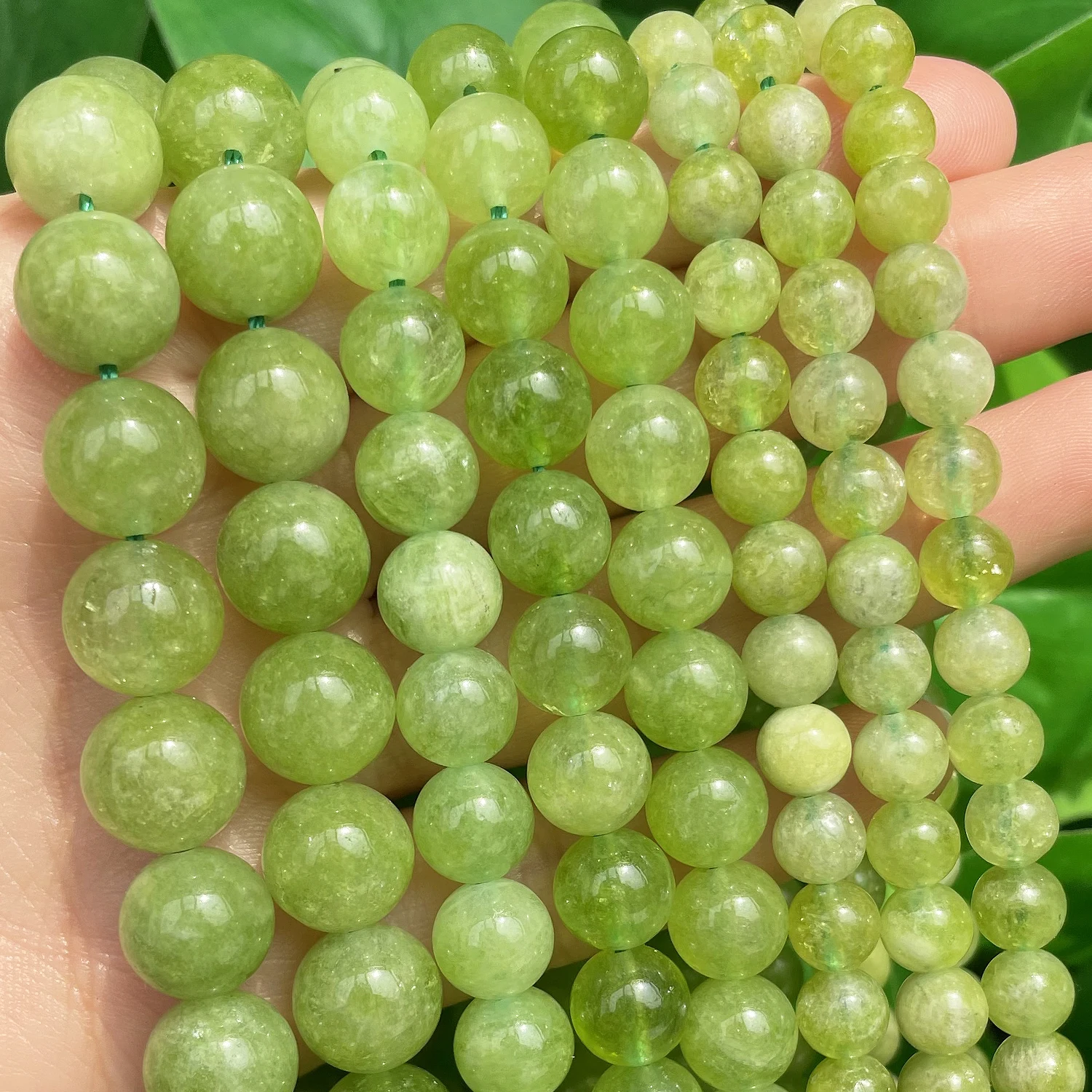 6 8 10mm Green Peridot Loose Stone Beads Smooth Round Spacer Beads For Jewelry DIY Making Bracelet Earrings Accessories 15''