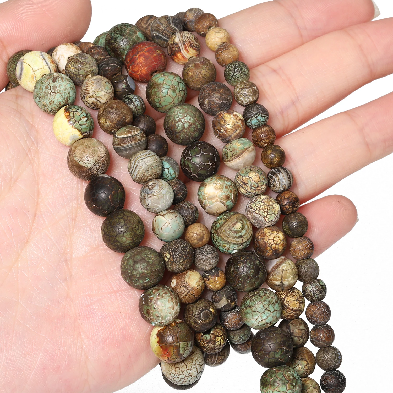 6/8/10mm Green Cracked Old Agate Beads Natural Stone Round Spacer Beads for Jewelry Making DIY Energy Bracelets Accessories 15''