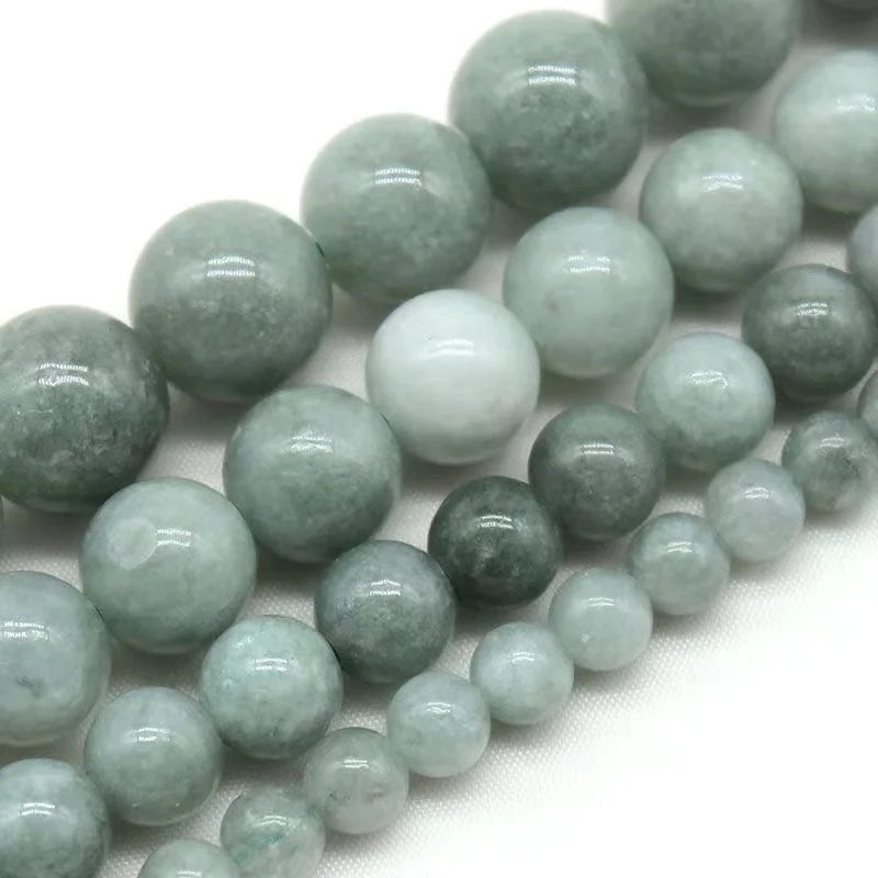 6/8/10/12mm AA Natural Stone Green Burmese Jade Bead Round Smooth Loose Beads for Jewelry Making Supplier Gifts Bracelets 15''