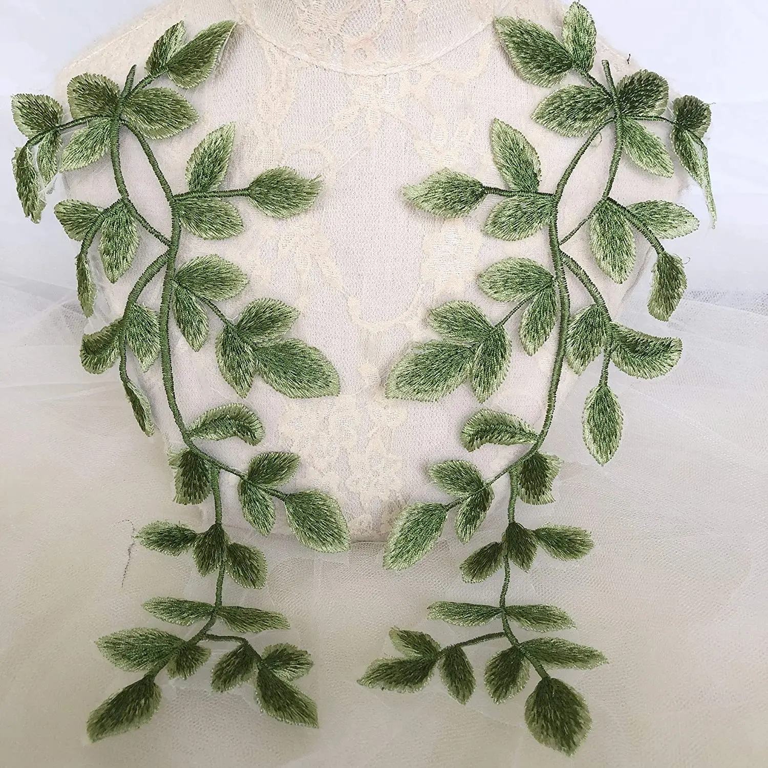1Pair Green Lace Applique Leaves Sew on Floral Embroidery Patches for DIY Clothes Garments
