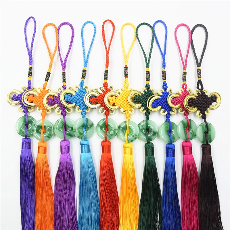 3Pcs/Lot Green Jade Flake Chinese Knot Tassels Accessories DIY Jewelry Garment Crafts Decoration Pendant Golden Edge Silk Tassel
