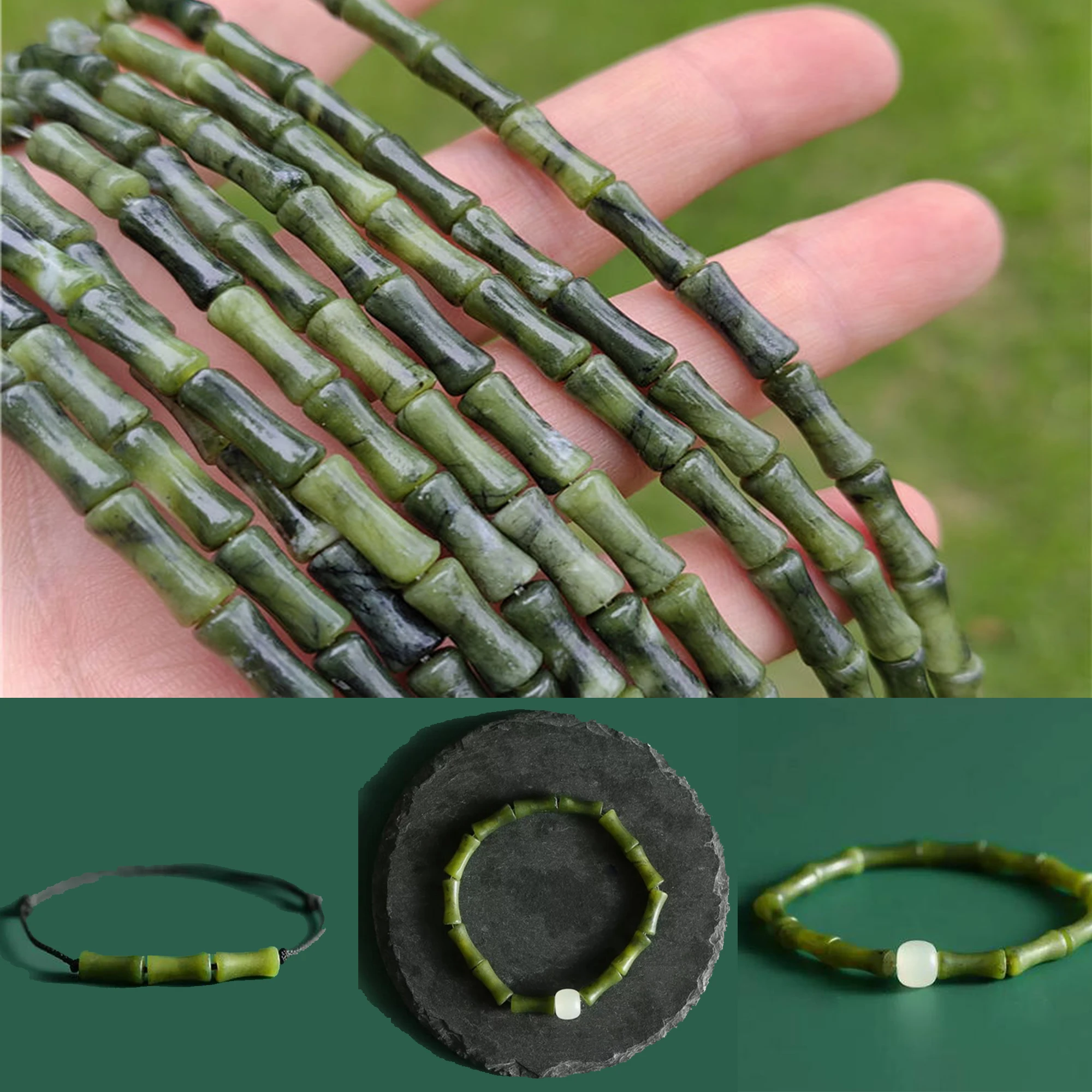 12x5mm Natural Stone Green Jade Bamboo Shape Loose Spacer Beads for Jewelry Making DIY Unique Bracelets Necklace Earrings