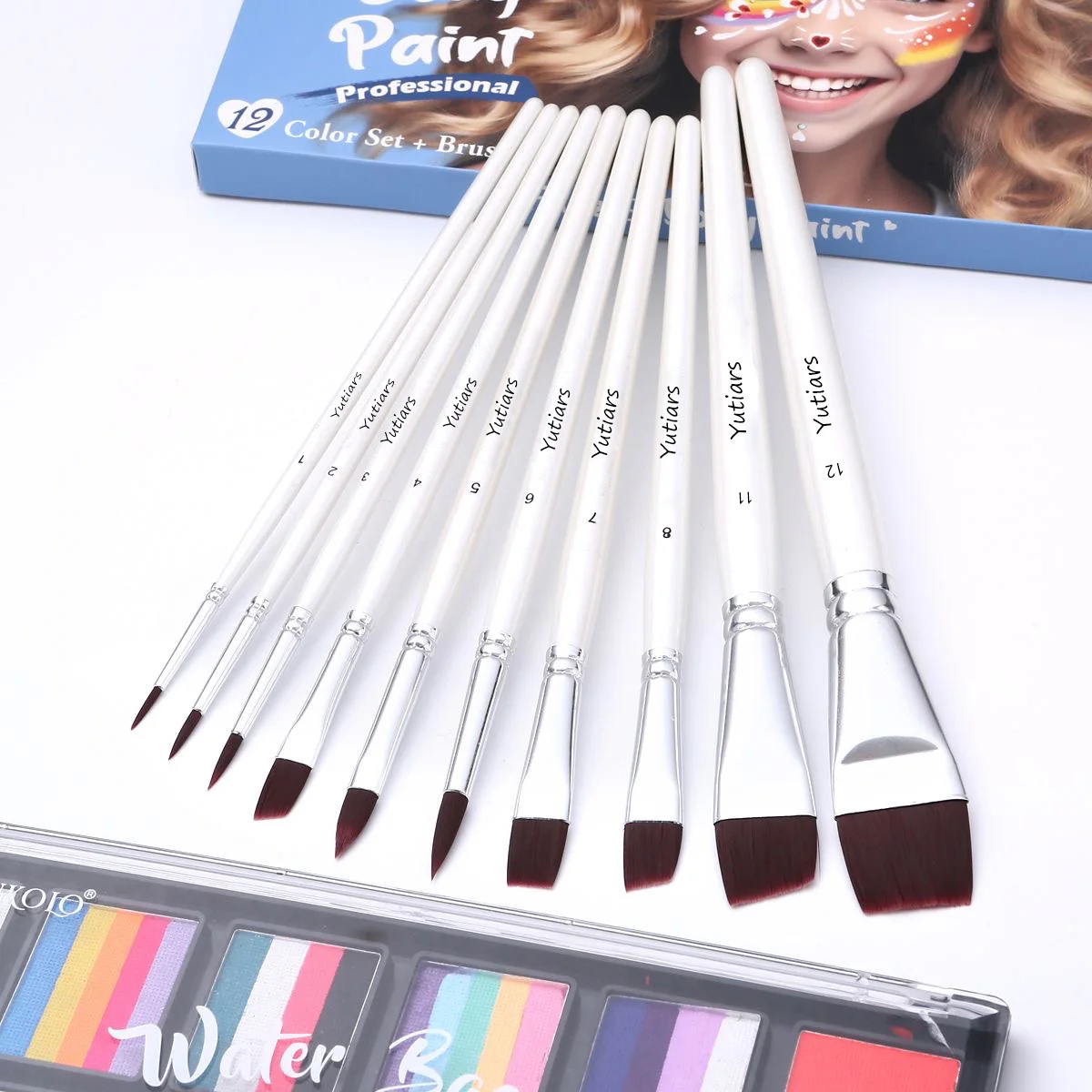 10Pcs Face Painting Brush Sets - Nylon Bristles for Watercolor, Gradient and Embowel, Quality Nylon Bristles for Acrylic, Oil