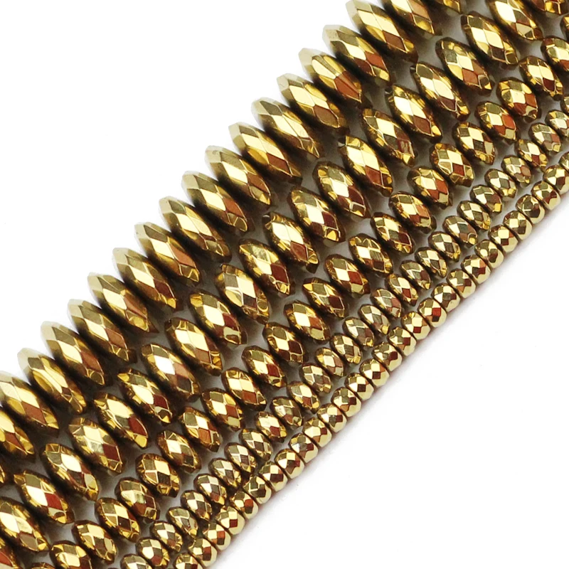 JHNBY Faceted Flat Round Hematite Ball 3/4/6/8/10mm Natural Stone Ore Gold Colors Loose Beads For Jewelry Bracelets Making DIY