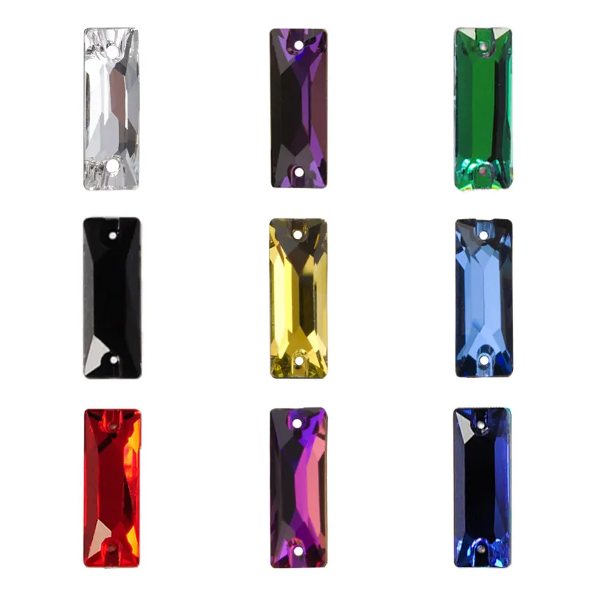 24-Colors 4-27MM Sew On Flat Rectangle Strass Rhinestone Crystal With Silver Claw For Hand-sewing Crafts Clothing Decorations
