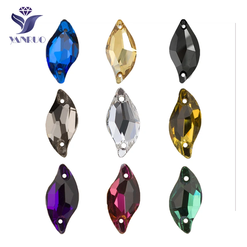 YANRUO 3254 Leaf All Color S Shape Sew On Rhinestones Glass Crystal Flat Back Stones Sewing Strass Applique For Dress