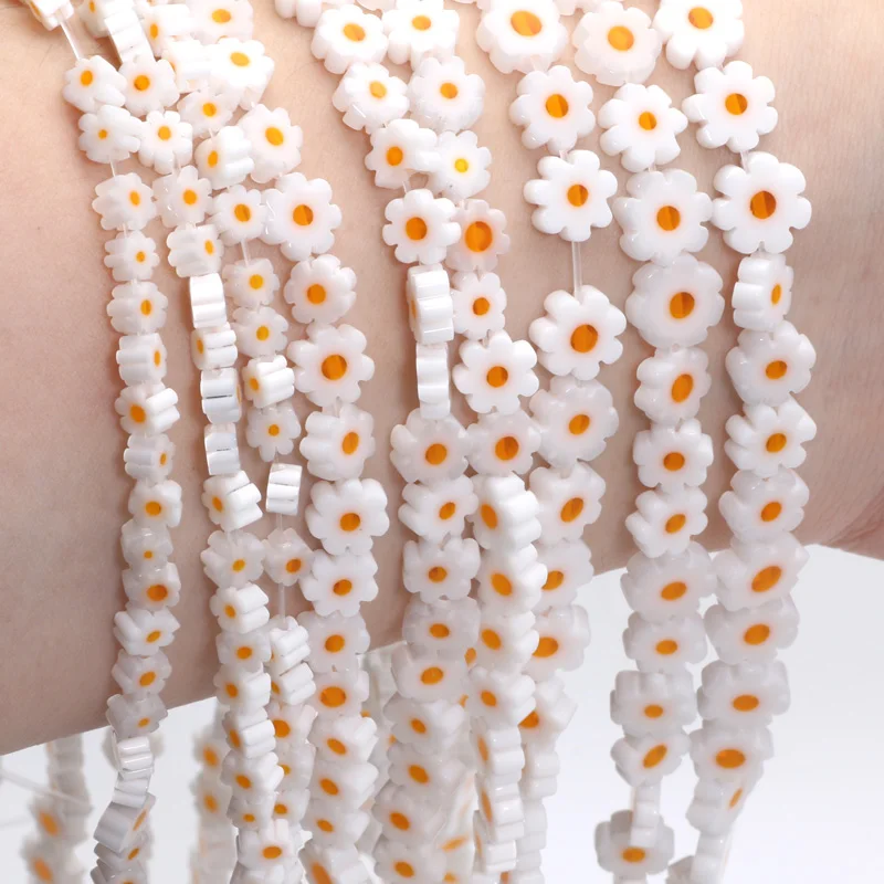 4-8mm Flower Lampwork Glass Flat Beads Daisy Spacer Loose Beads For Jewelry Making DIY Bracelet Crafts Handmade Accessories