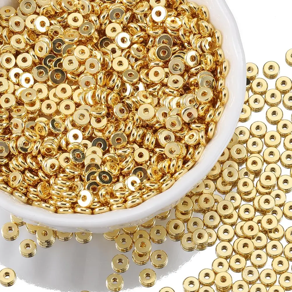 50pcs 18K Gold Plated Spacer Beads Big Hole Flat Round Loose Beads For DIY Bracelet Necklace Making Jewelry Supplies Wholesale