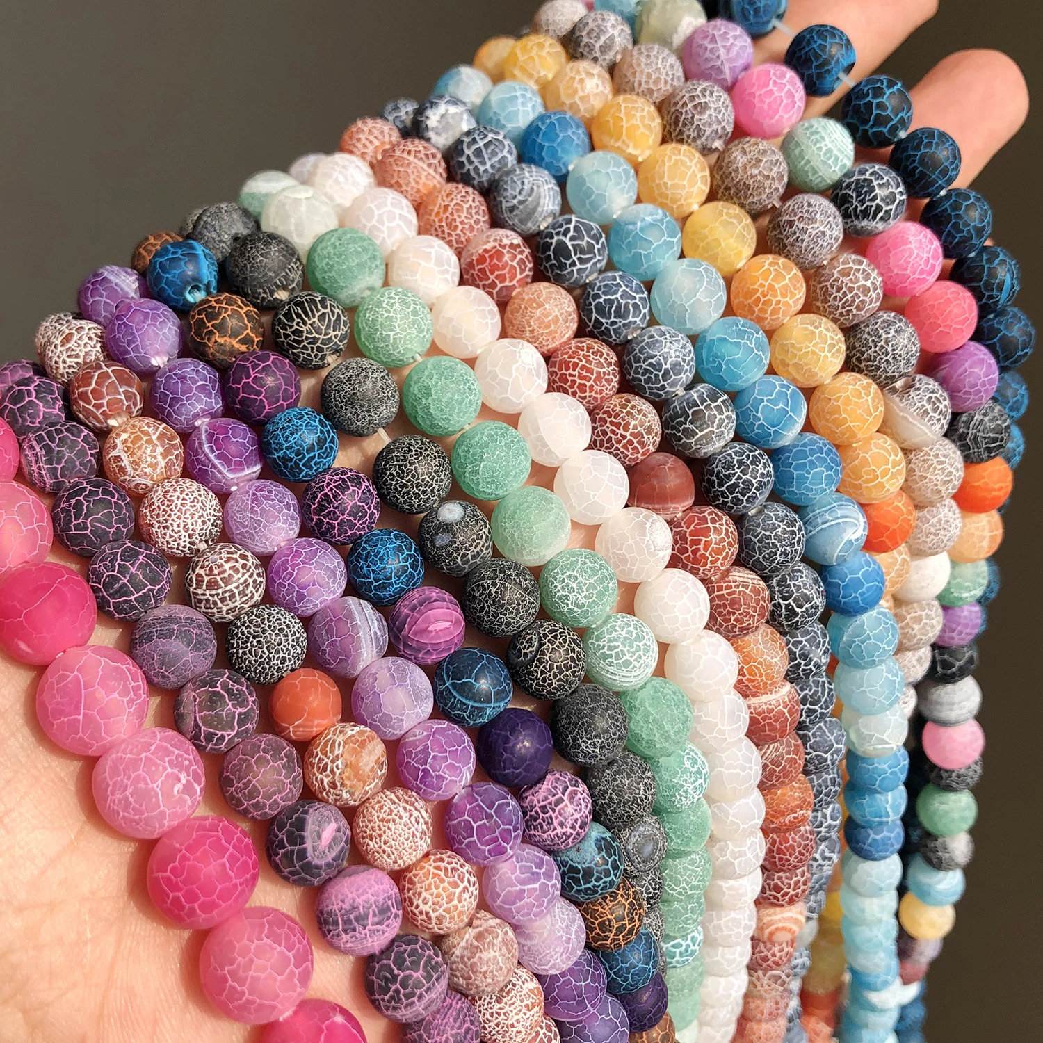 Natural Coloful Frost Cracked Agates Stone Beads Round Loose Spacer Beads for Jewelry Making DIY Bracelet Neckalce 4/6/8/10/12mm