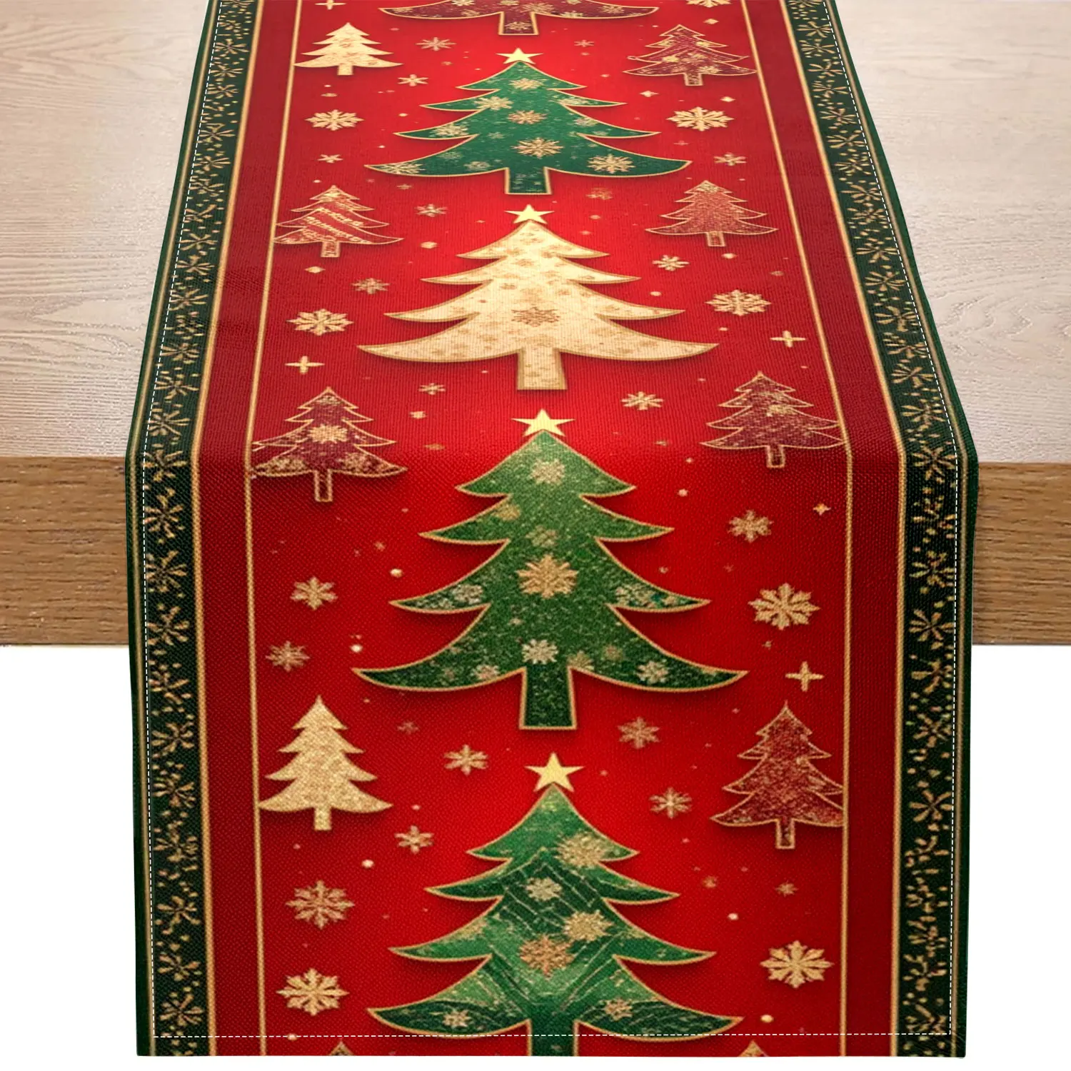 1Pc Christmas Themed Table Runner, with Golden Christmas Trees and Snowflake Patterns, Suitable for Christmas Parties, Holiday Home Decoration