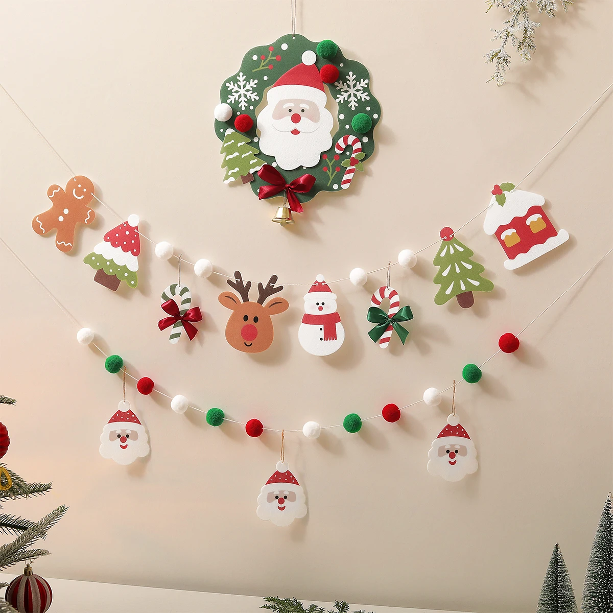 Christmas Pearl Garland Old Man Christmas Tree Furball Hanging Ornament Party Decoration Background Wall Cute Banner Hanging Ornament