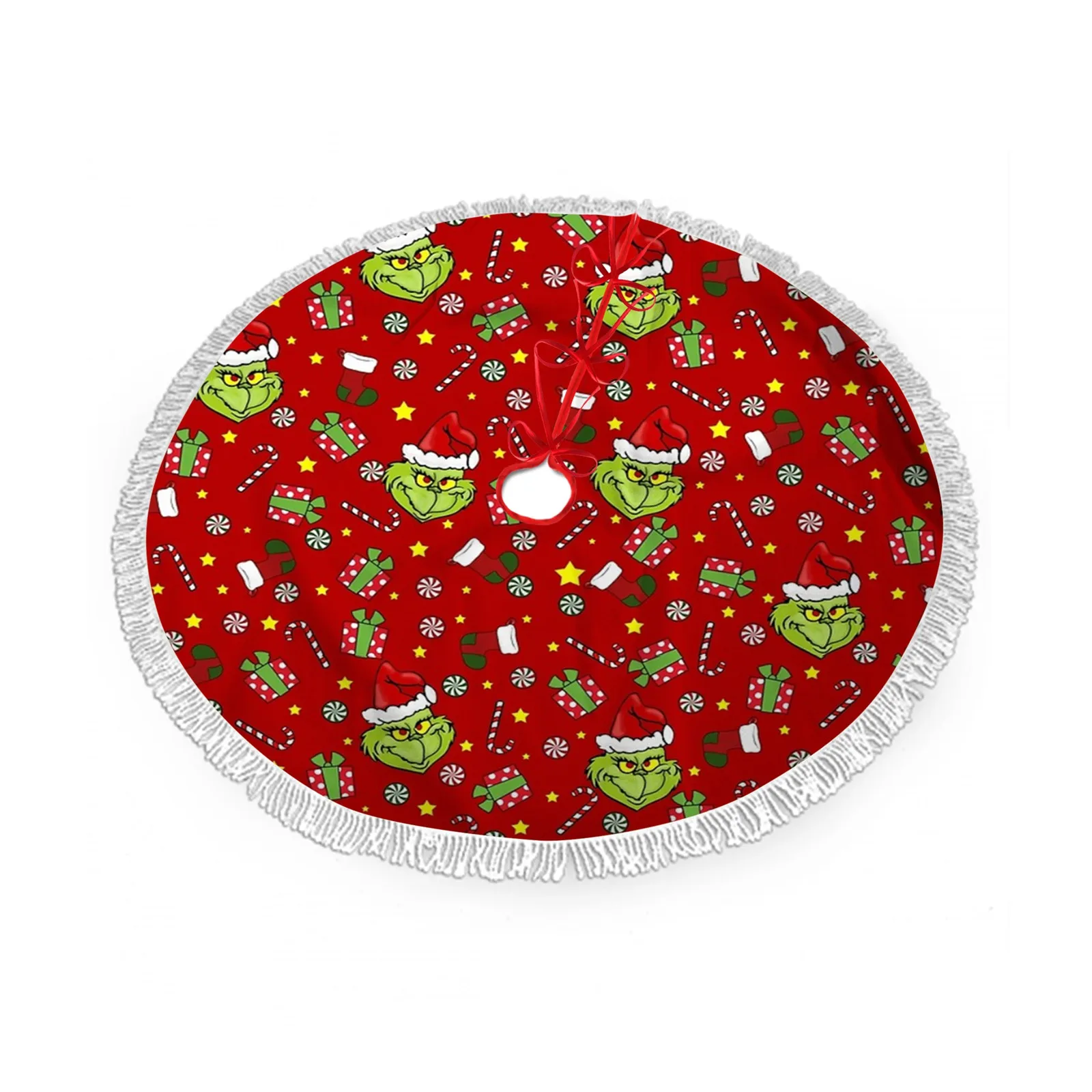 VIKAMA Green Monster Grinch Christmas Tree Skirt Festive Atmosphere Home Decor for Indoors and Outdoors Christmas Ornaments