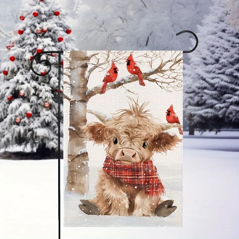 Christmas Highland Cow & Cardinal Garden Flag Linen Material Double-Sided Garden Flag for Home and Garden Decoration Flag  Read more