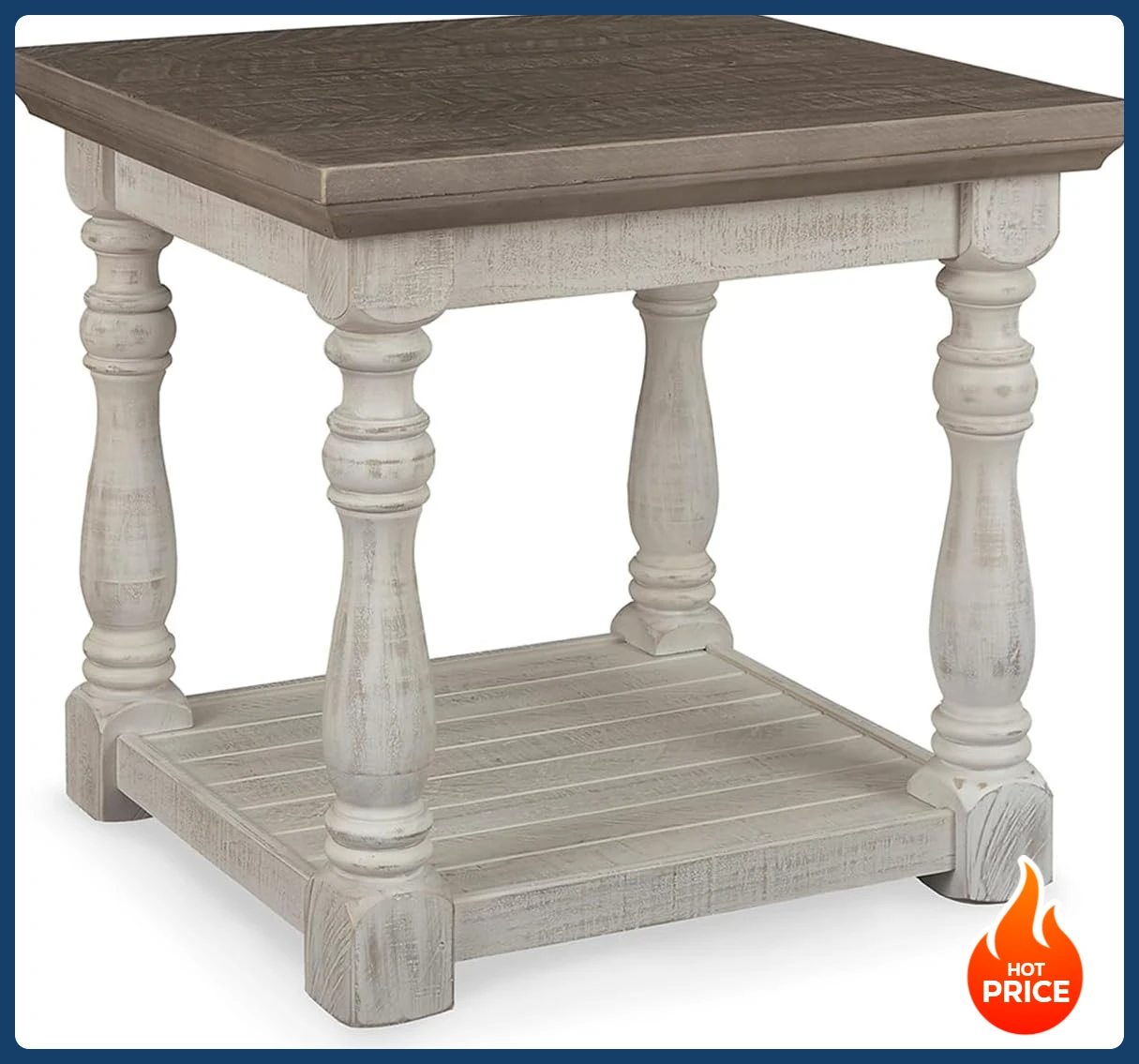 [New Arrival!]Havalance Farmhouse Square End Table with Floor Shelf, Vintage Gray & White with Weathered Finish  Read more
