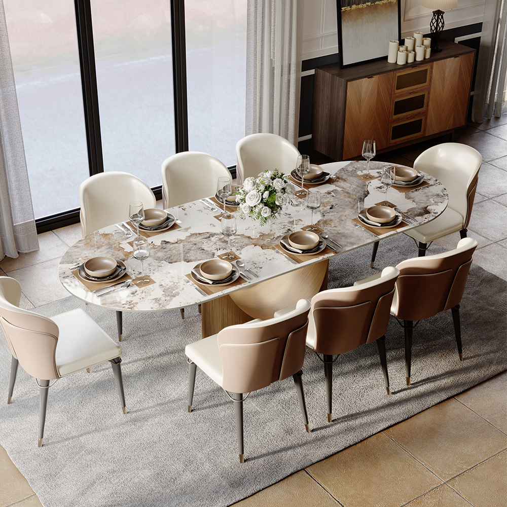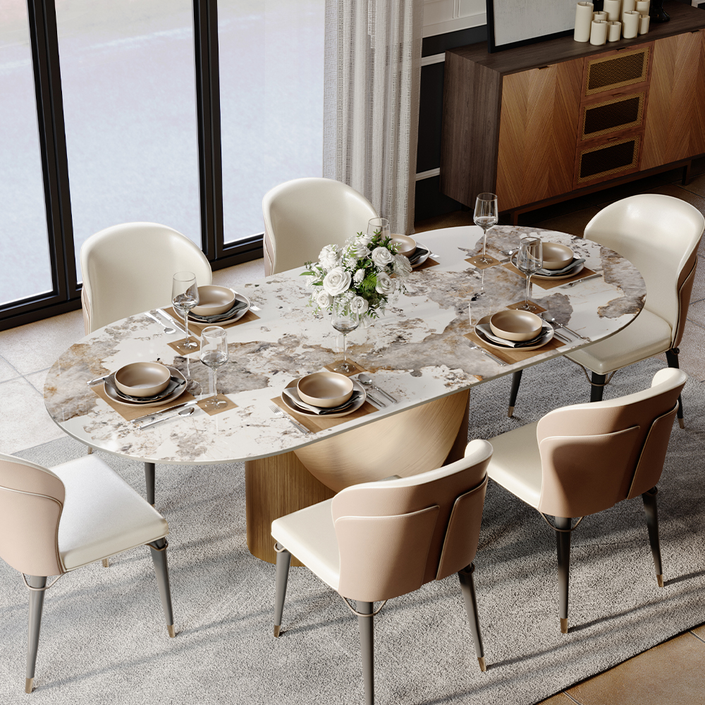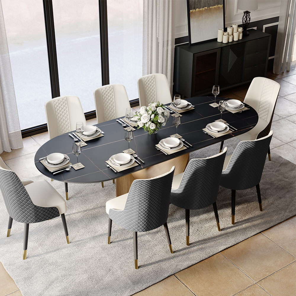[Durablity]The tabletop is made of 12mm sintered stone, NSF certified and radiation-free. Easy to clean and scratch-resistant, ensuring long-lasting use.[Stability]The table is reinforced with multiple layers of solid wood to provide strong support...