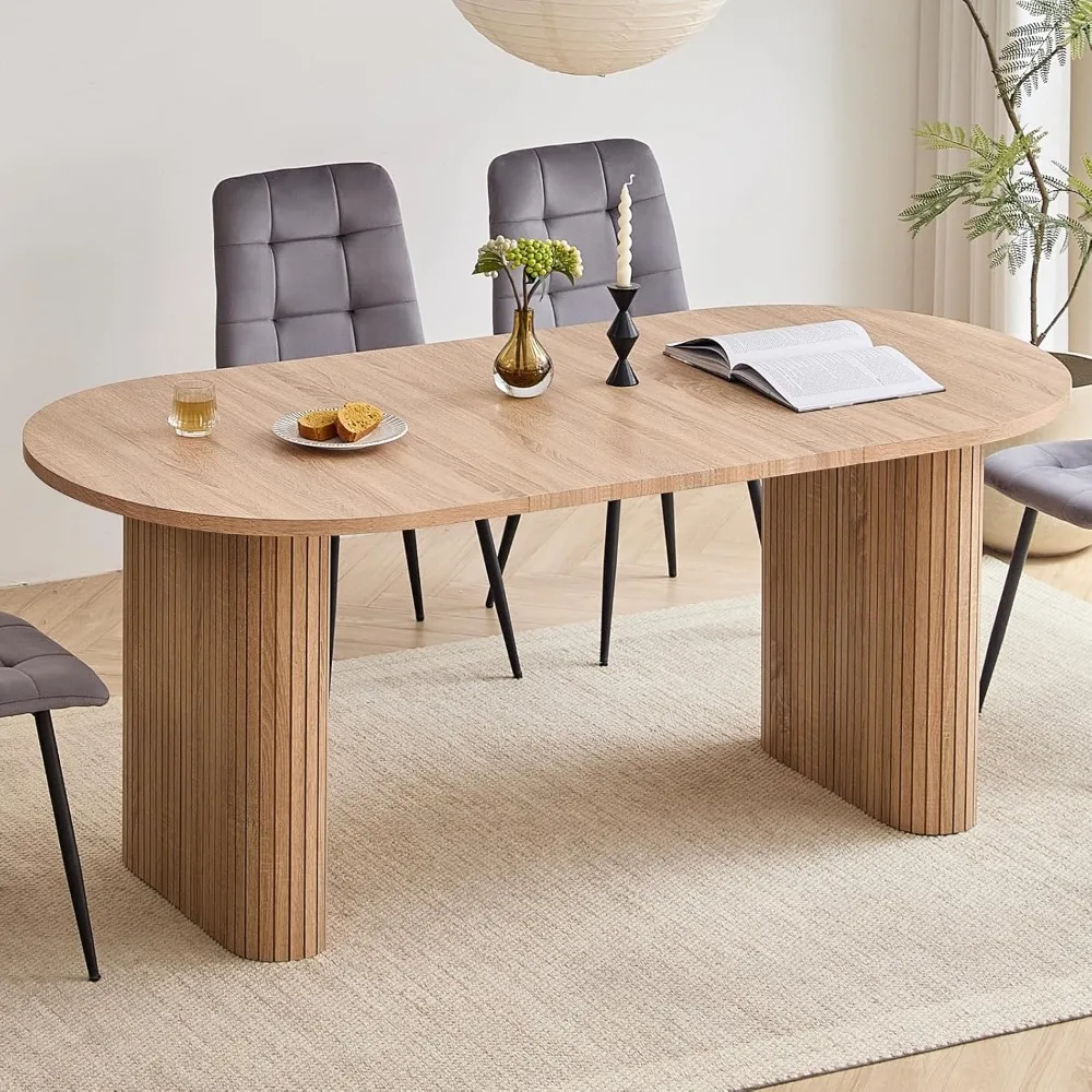70.8" Modern Dining Table Set for 4 6 People, Oval Kitchen Table, Farmhouse Style Large Dining Room Table for Home & Kitchen Brea