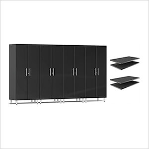 Ulti-MATE Garage Cabinets 4-Piece Tall Garage Cabinet Kit and 4-Shelf Bundle in Midnight Black Metallic
