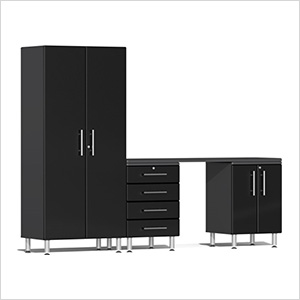 Ulti-MATE Garage Cabinets 4-Piece Garage Cabinet Kit with Channeled Worktop in Midnight Black Metallic