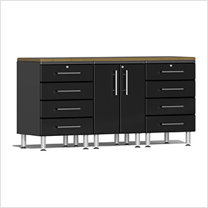 Ulti-MATE Garage Cabinets 4-Piece Garage Workstation Kit with Bamboo Worktop in Midnight Black Metallic