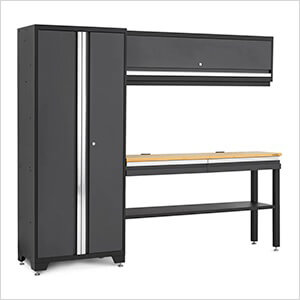 NewAge Garage Cabinets BOLD Series Grey All In One 4-Piece Set with Bamboo Top
