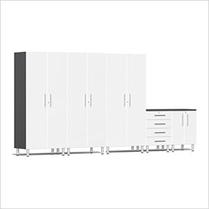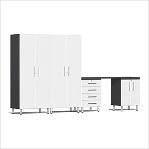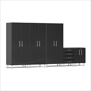 This five (5) piece garage cabinet system provides versatile oversized shelves / drawers, and space saving wall storage to get you clutter-free quickly.