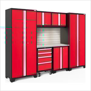NewAge Garage Cabinets BOLD Series Red 7-Piece Set with Stainless Top, Backsplash, LED Lights