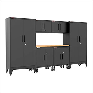 Armadillo Tough Black 7-Piece Garage Cabinet Set with Levelers and Casters