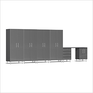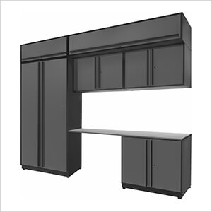 Ulti-MATE Garage Cabinets 7-Piece Garage Cabinet Kit with Channeled Worktop in Graphite Grey Metallic