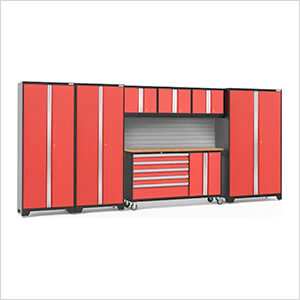 NewAge Garage Cabinets BOLD Red 7-Piece Project Center Set with Bamboo Top and Backsplash