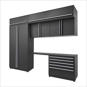 Proslat Garage Cabinets 7-Piece Mat Black Cabinet Set with Silver Handles and Powder Coated Worktop