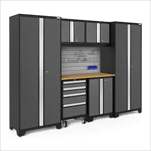 NewAge Garage Cabinets BOLD Series Grey 7-Piece Set with Bamboo Top